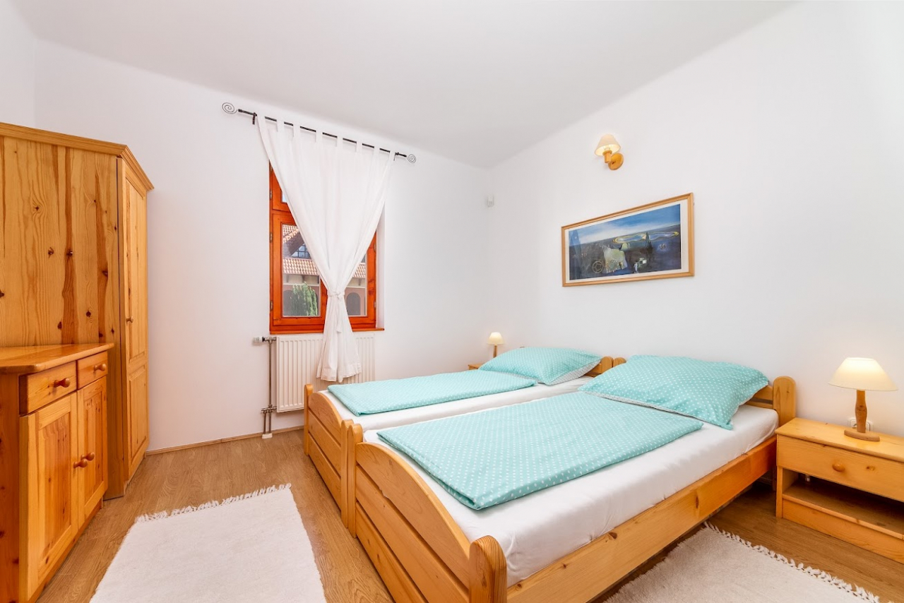 Emelet: Fürdőszoba/WC, három kétágyas szoba, balkon.